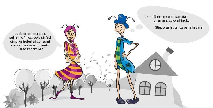 Ce difera la acest program este modul in care vorbim despre bani, respectiv unul amuzant. Am imprumutat ideea fabulei Greierele si Furnica si am inceput sa spunem povesti despre bani prin intermediul celor doua personaje – chibzuitul si cheltuitorul. Si a functionat :)