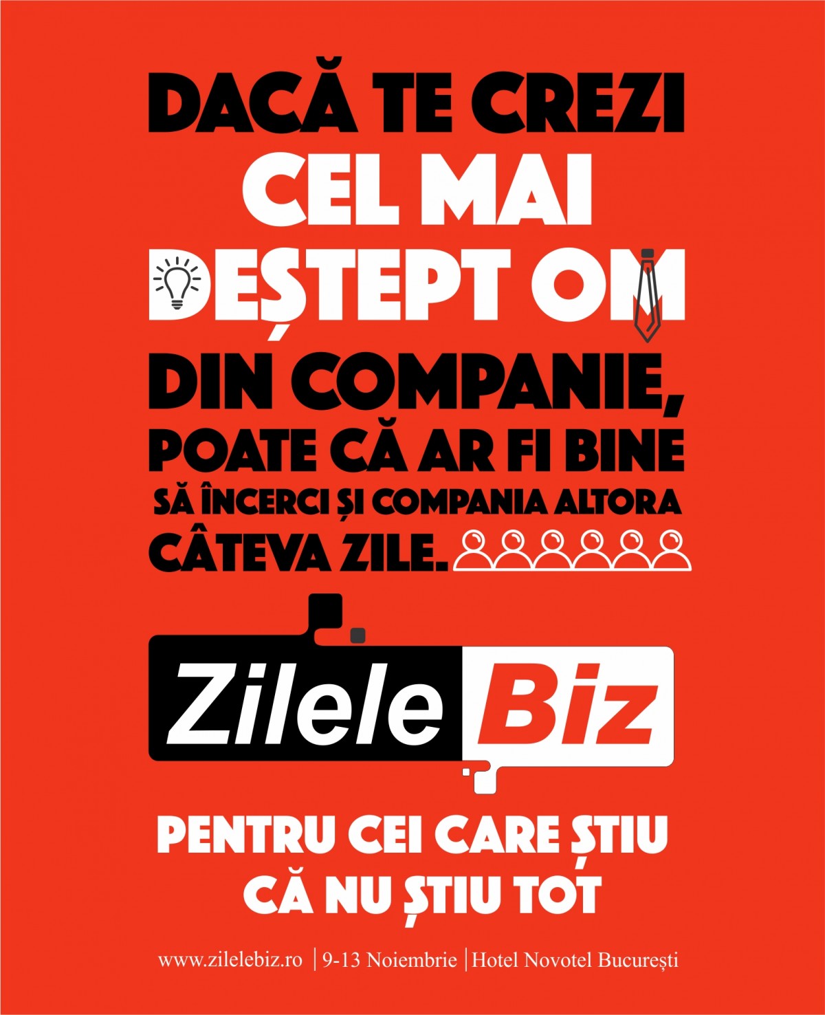 Revista Biz organizeaza in perioada 9-13 noiembrie cea de a 14-a editie a evenimentului Zilele Biz, la Hotel Novotel, Bucuresti.