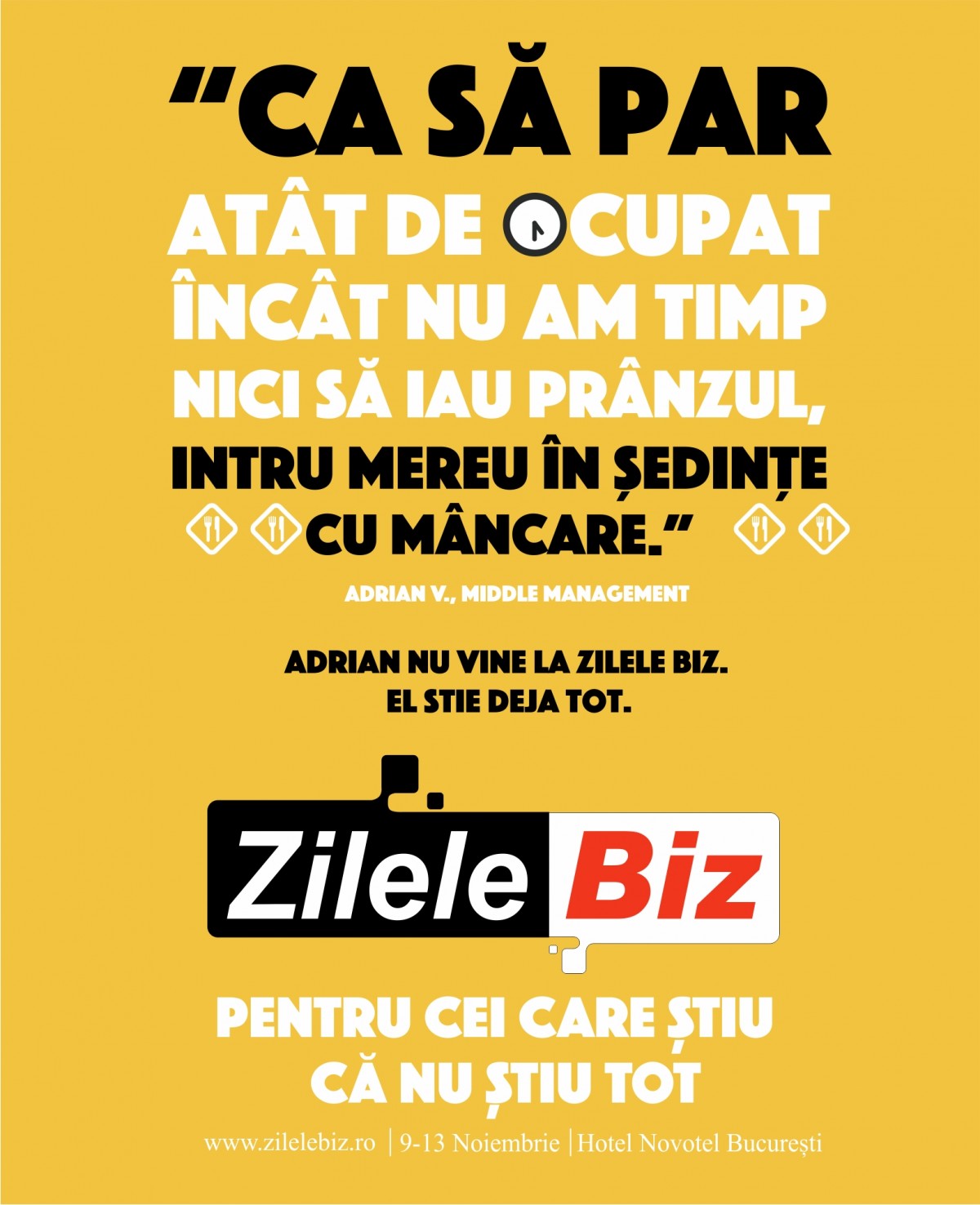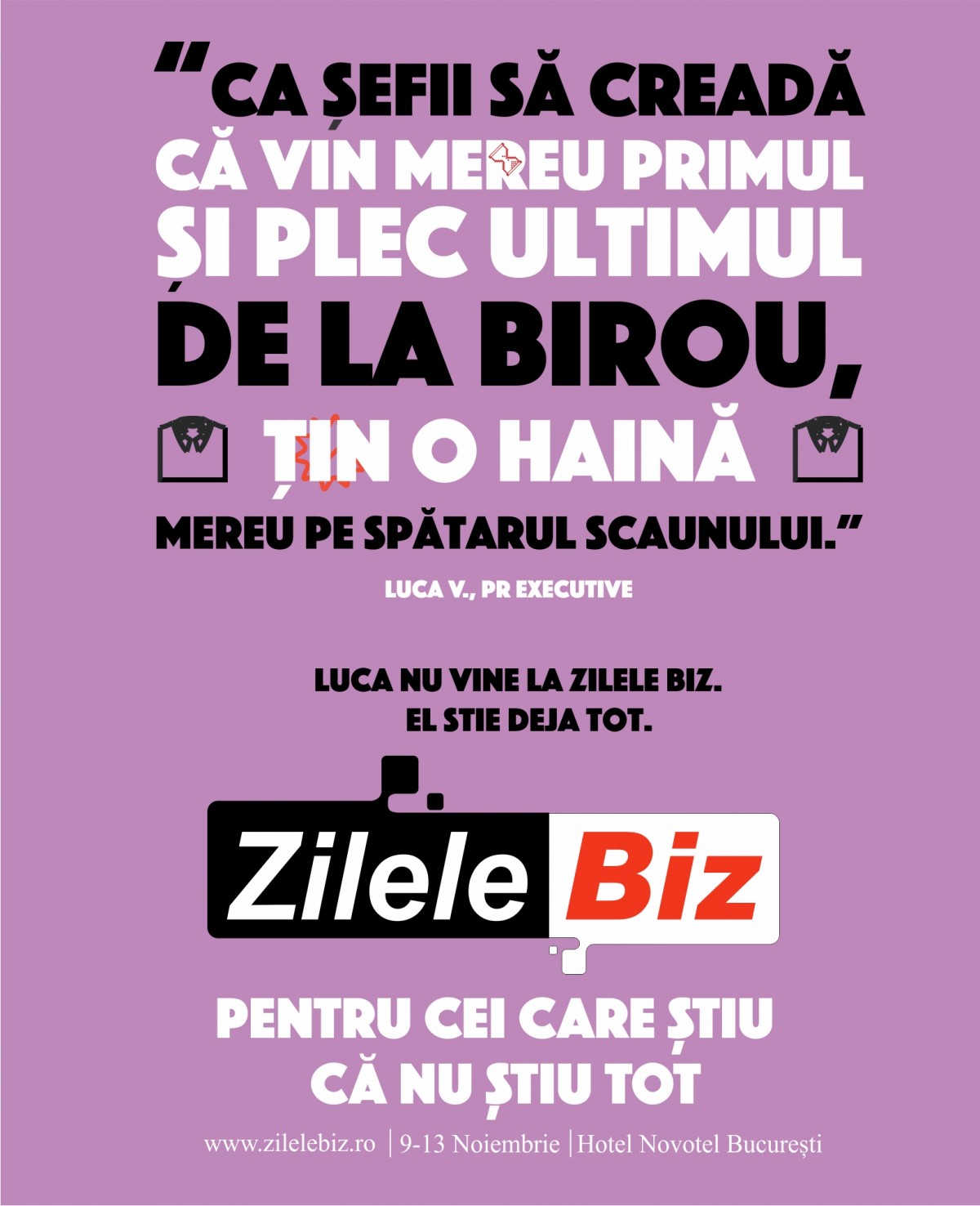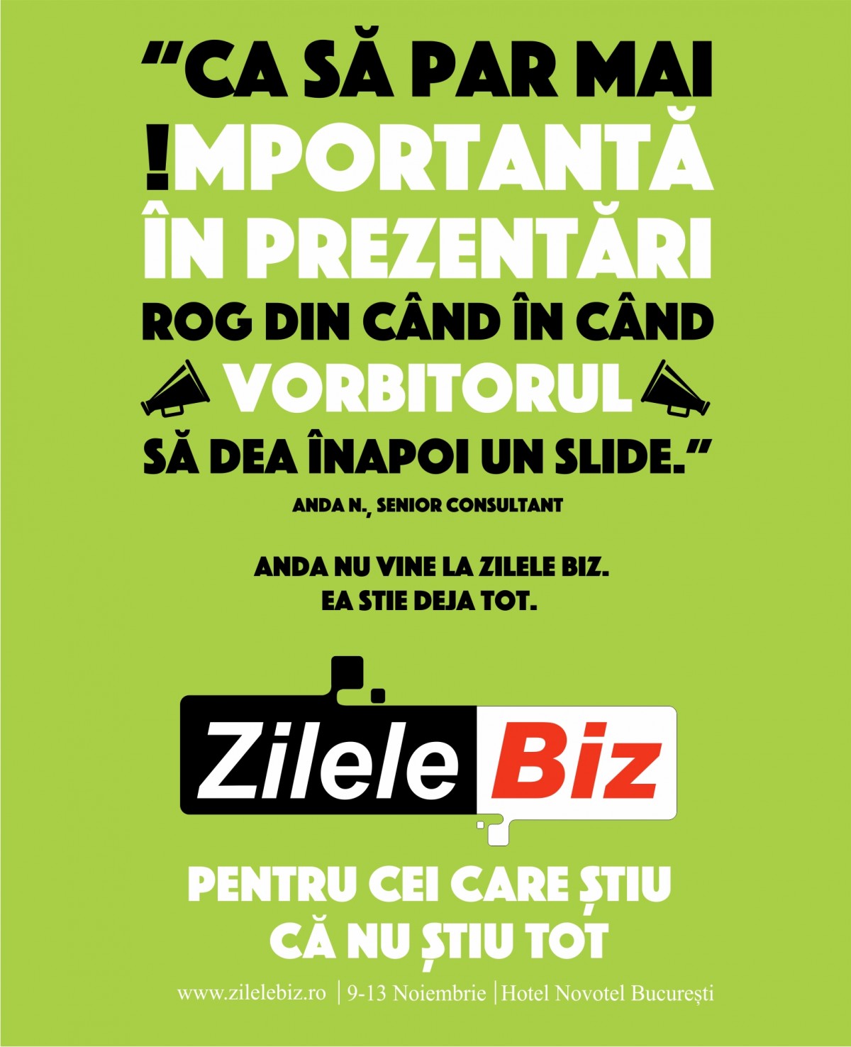"Cu fiecare editie, Zilele Biz se diferentiaza de alte evenimente de business prin continut de calitate si invitati care inteleg ca o prezentare buna nu inseamna un profil de companie.", spune Marta Usurelu, redactor sef al revistei Biz, organziatorul evenimentului.
