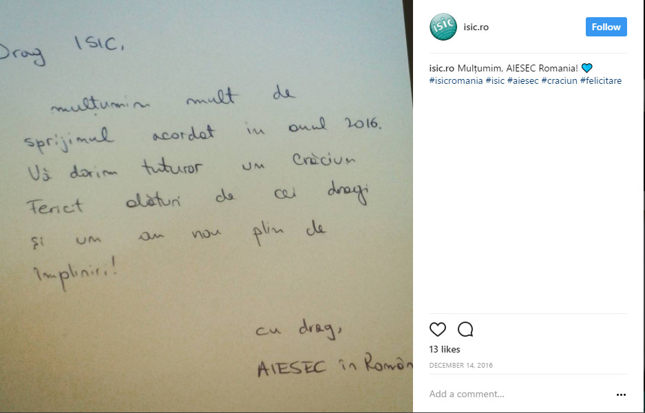 Am ajuns apoi sa ma ocup de distribuirea legitimatiilor ISIC in toata tara, dupa care am preluat partea de comunicare si social media ca in prezent sa ma ocup de tot ce inseamna brandul ISIC in Romania.