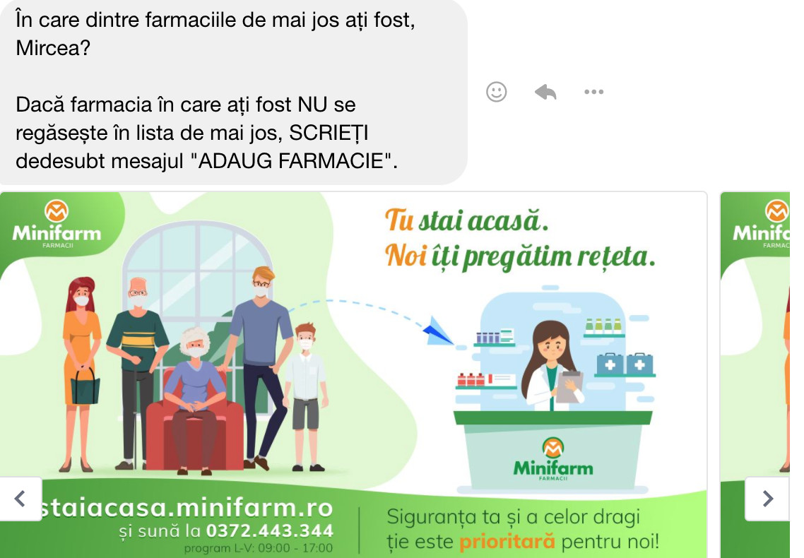 "Suntem direct implicați în piața farmaceutică și în colaborarea cu farmaciile de peste 6 ani. În acest context, vedem zilnic oameni care caută anumite produse și sunt nevoiți să meargă de la o farmacie la alta pentru a le găsi. Ne-am gândit ce putem face noi ca să ajutăm și să reducem riscul de răspândire a COVID-19. Am îmbinat cunoștințele despre industria farmaceutică, alături de expertiza în digital marketing, în mod special de messenger marketing, pentru a construi acest sistem", declară Doru Mircea (Fondator Doctrina România).
