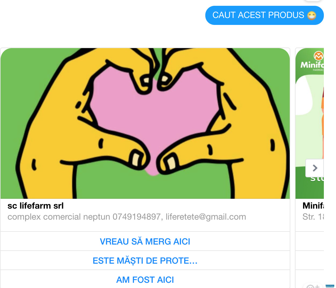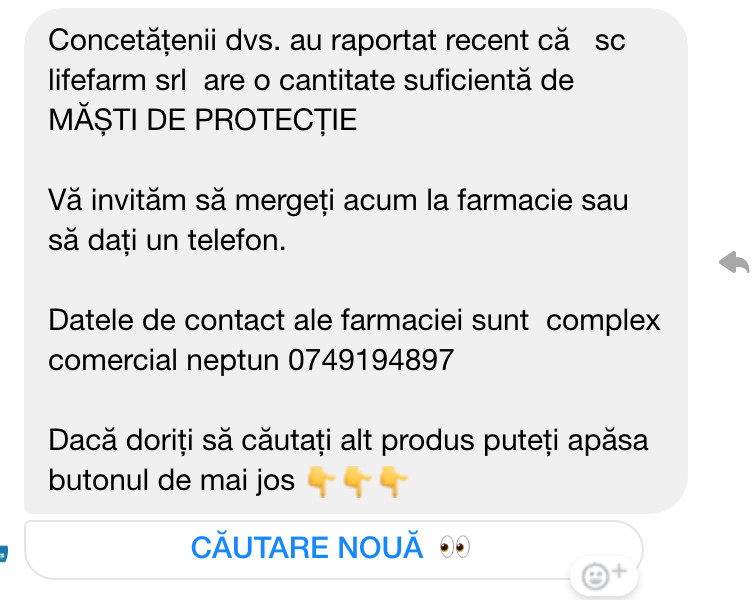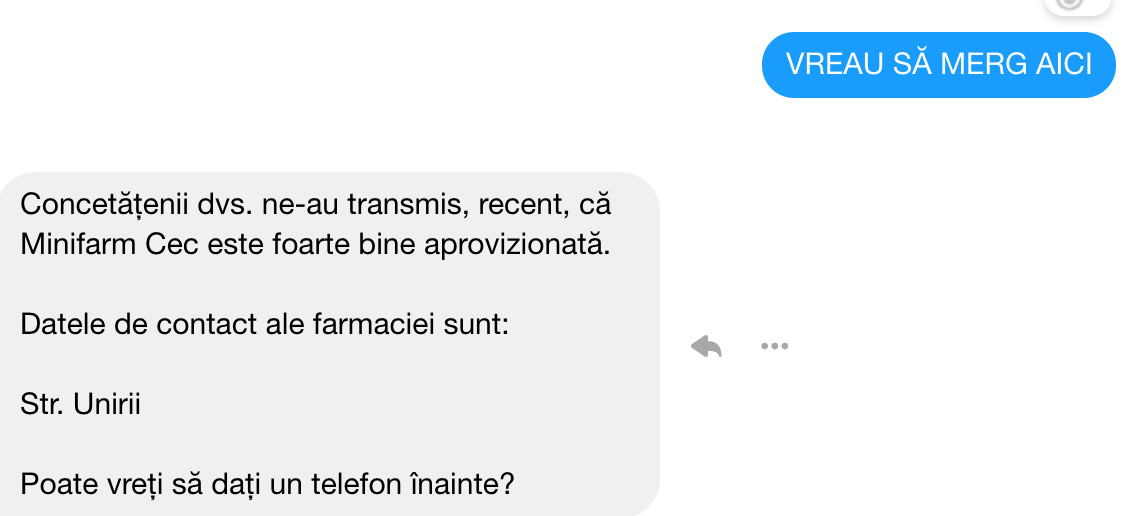 După selectarea produsului, utilizatorilor le sunt indicate farmaciile în care îl pot găsi, iar după câteva ore sunt întrebați, în mod automat, dacă au găsit produsul respectiv în farmacia sugerată.