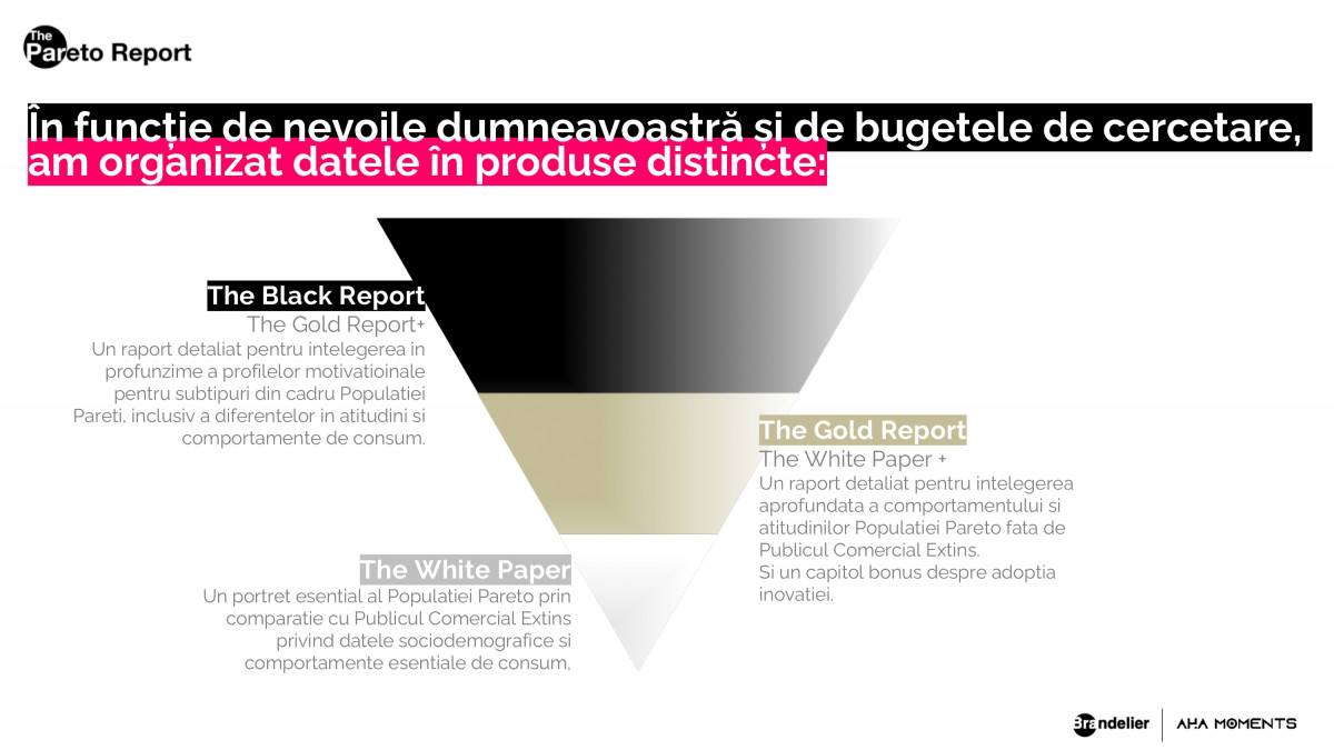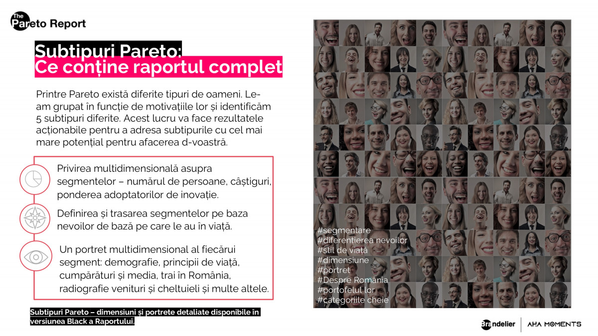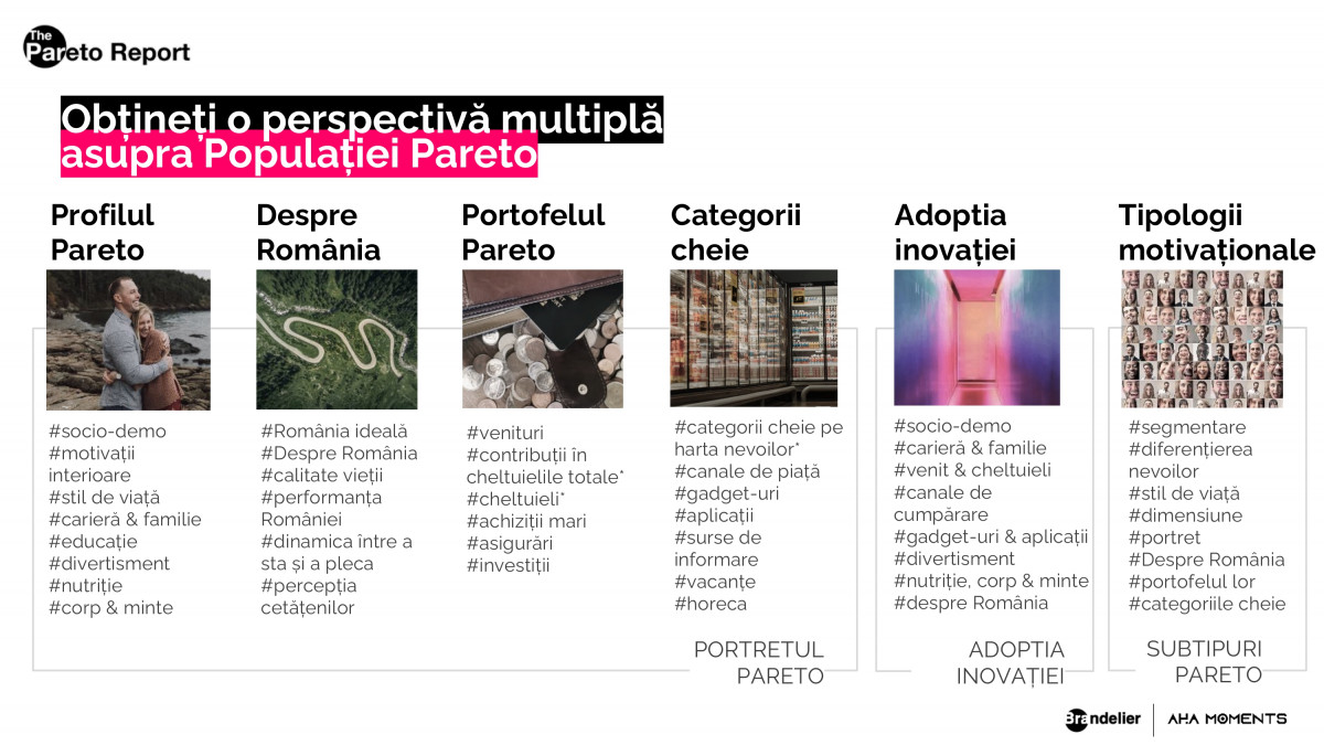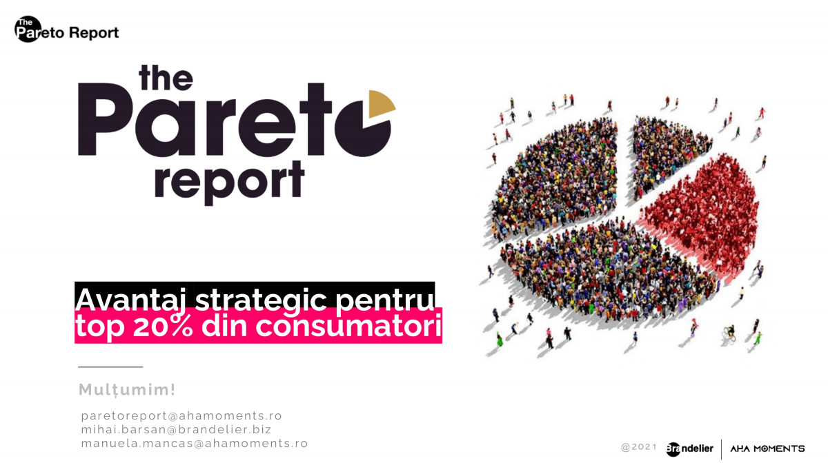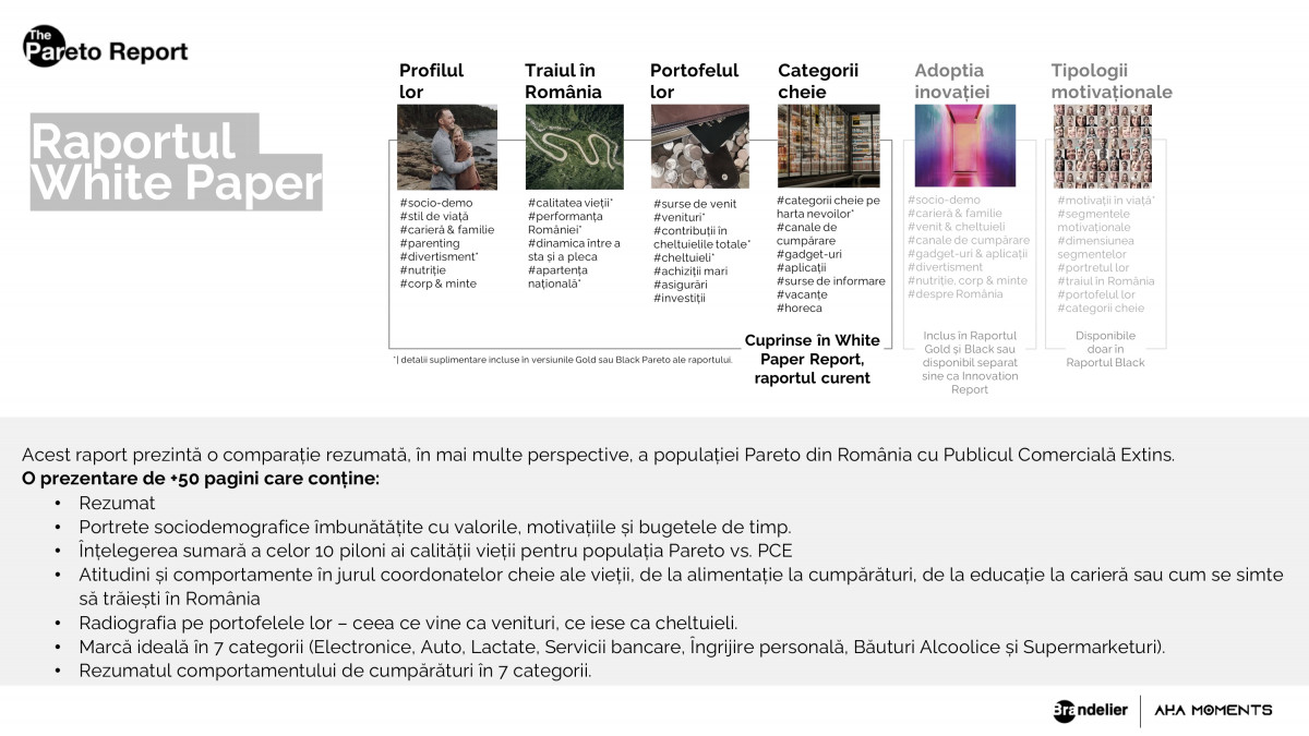 "Înțelegerea lumii Pareto oferă context esențial pentru alegerea grupurilor țintă, rafinarea strategiilor de portofoliu, introducerea de noi produse și servicii, poziționare de brand, strategii de preț și de comunicare.", declară Mihai Bârsan, fondator Pareto Report.