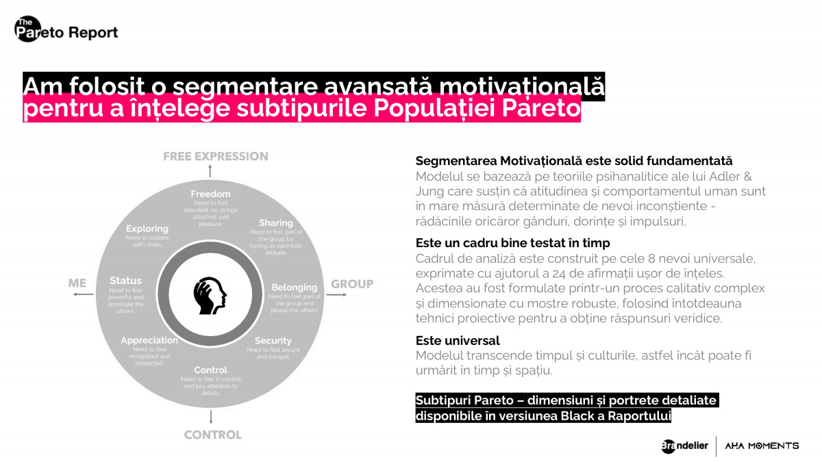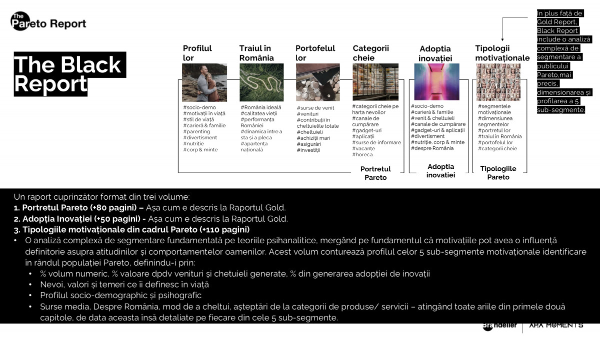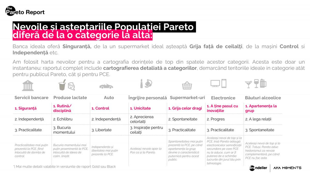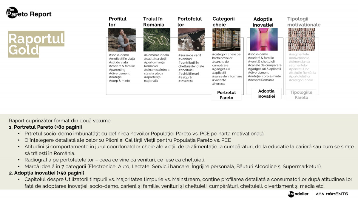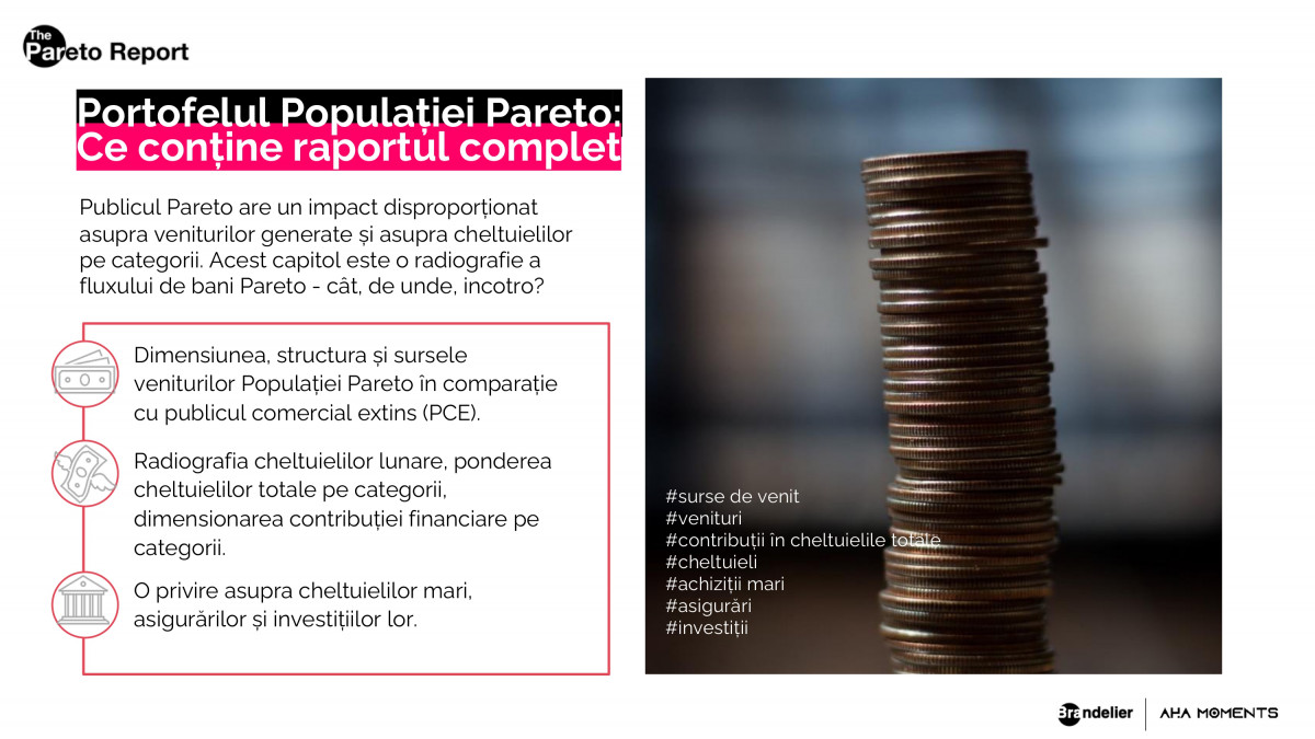 "Înțelegerea lumii Pareto oferă context esențial pentru alegerea grupurilor țintă, rafinarea strategiilor de portofoliu, introducerea de noi produse și servicii, poziționare de brand, strategii de preț și de comunicare.", declară Mihai Bârsan, fondator Pareto Report.