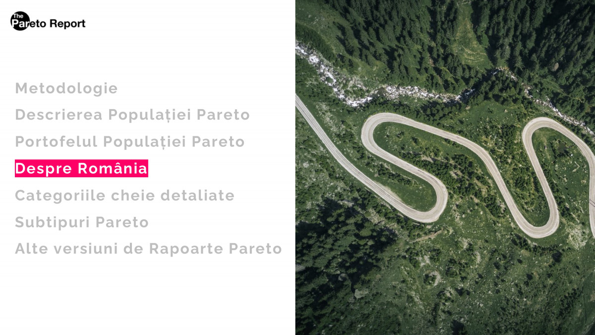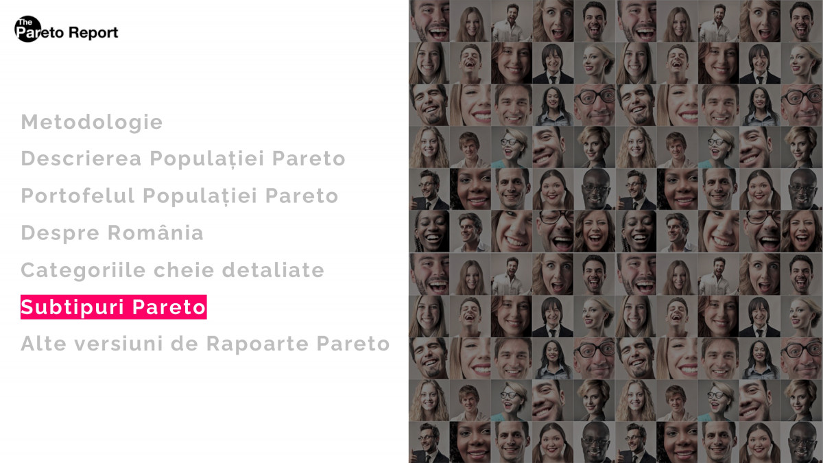 Raportul Pareto este rezultatul unei cercetări complexe, realizate în mai multe stagii distincte ce ne oferă posibilitatea de a descoperi și înțelege Populația Pareto din foarte multe unghiuri: