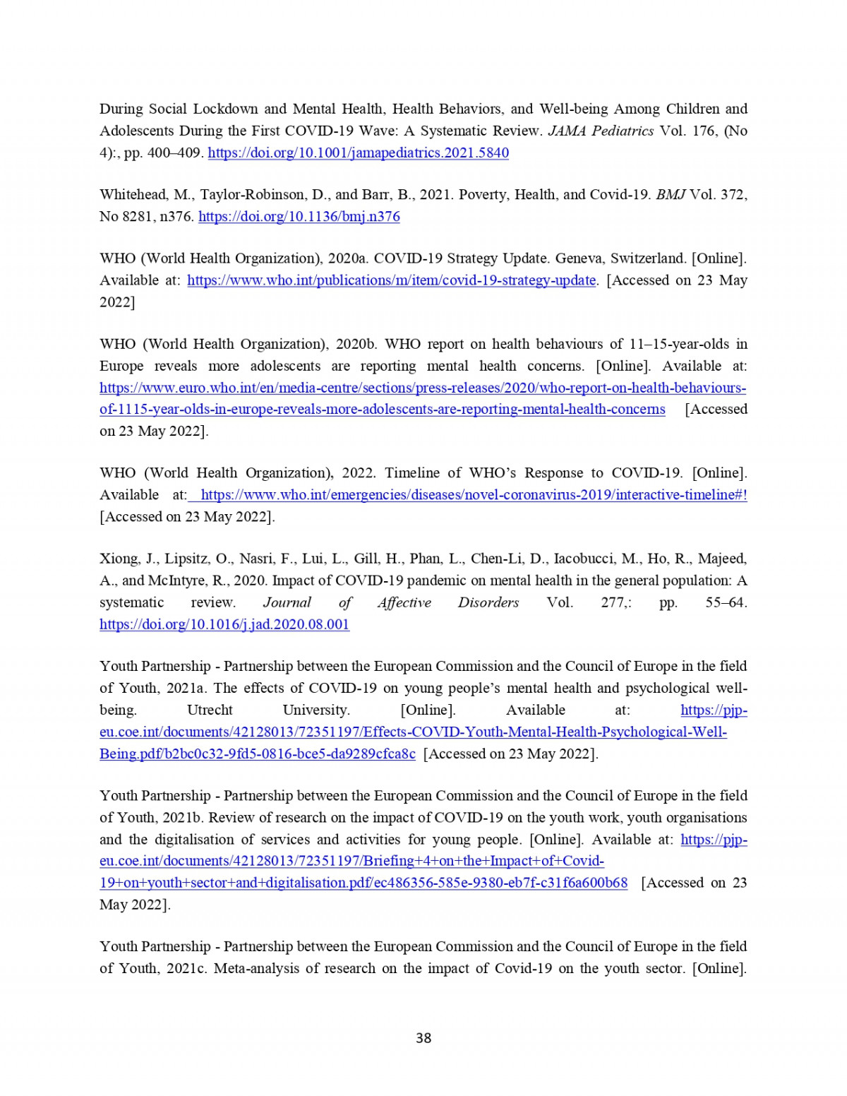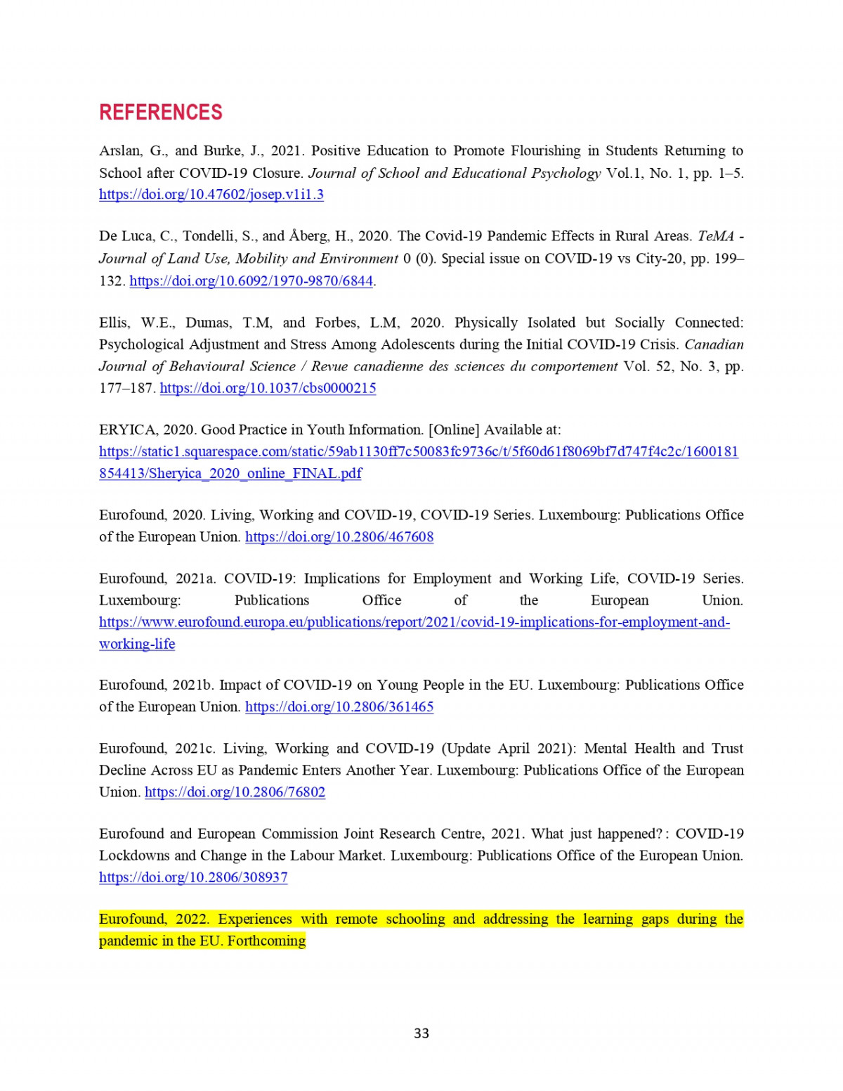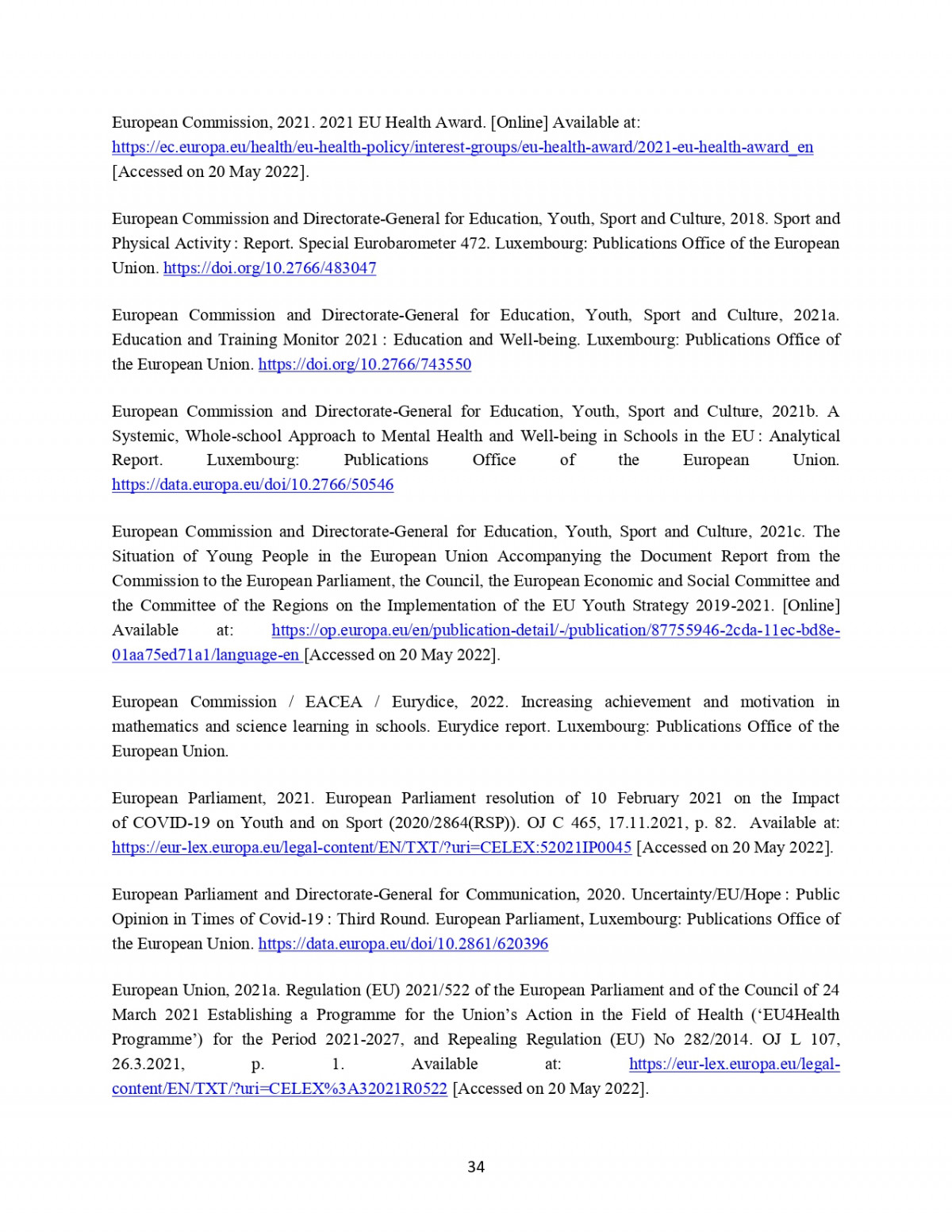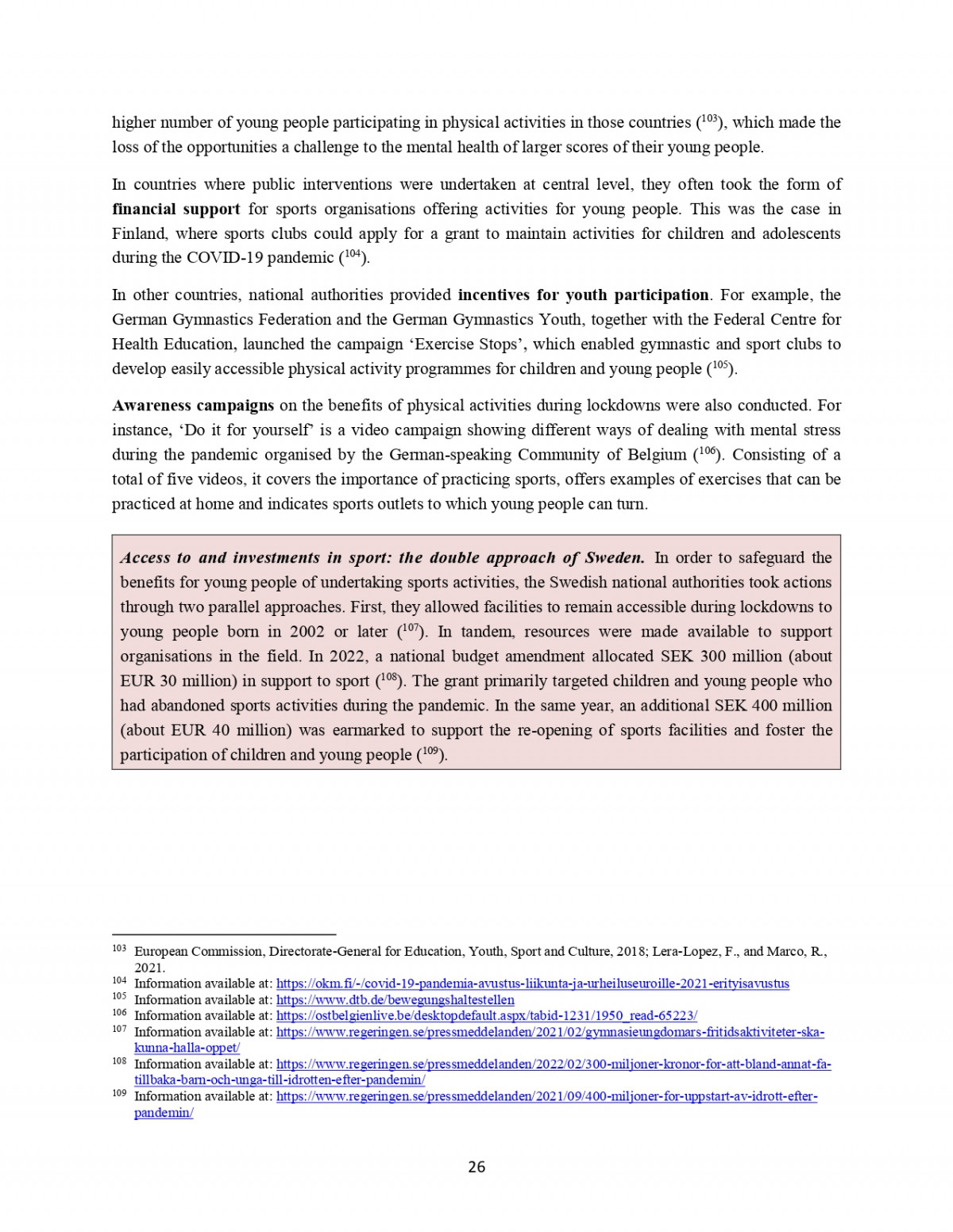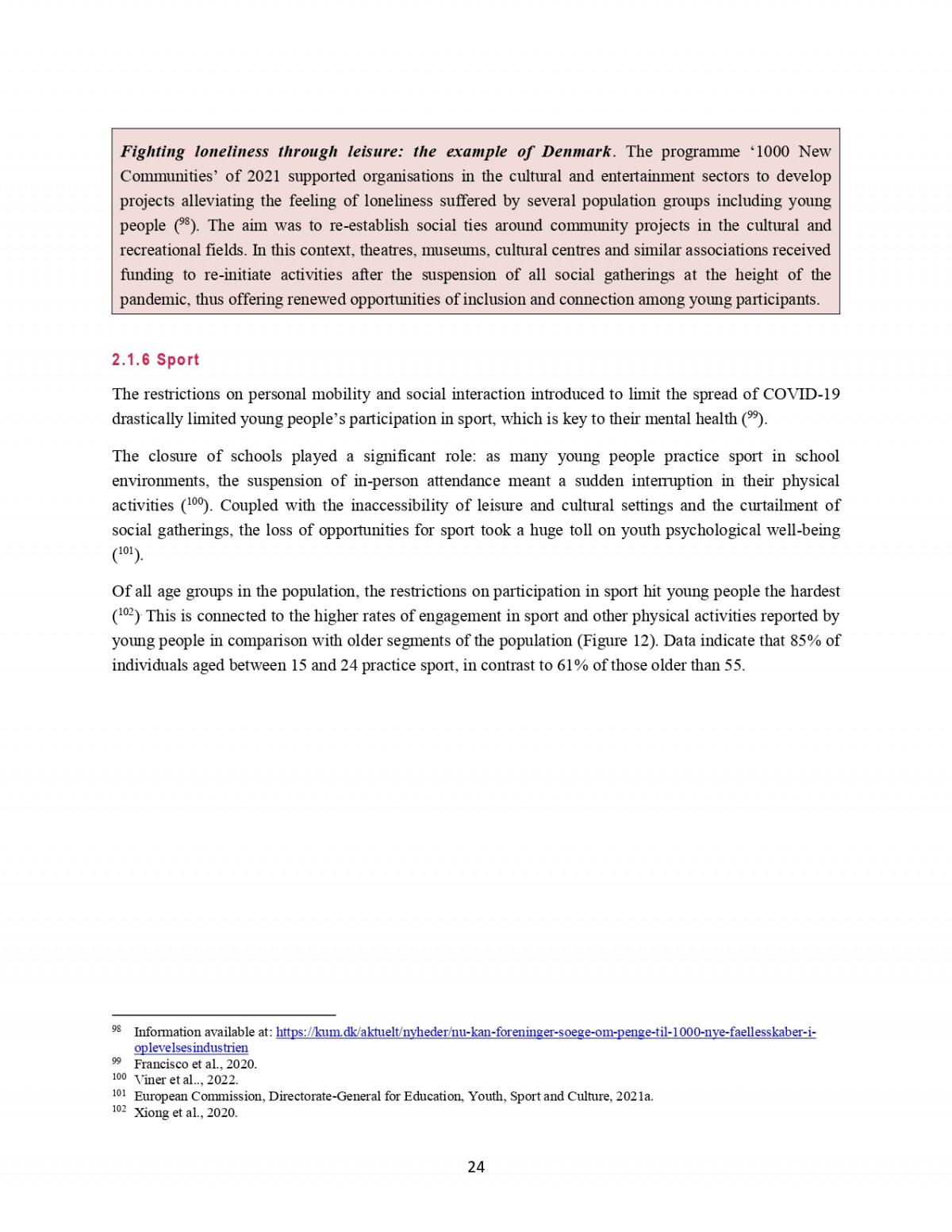 Pe lângă eforturile statelor membre, cum ar fi România, Comisia Europeană a desemnat 2022 drept Anul European al Tineretului în recunoașterea sacrificiilor tinerilor în timpul pandemiei COVID-19. Un sondaj Eurobarometru Flash din 2022 arată tineri din 16 dintre cele 27 de state membre care au în vedere îmbunătățirea sănătății și bunăstării mentale și fizice ca cea mai importantă prioritate pentru Anul European al Tineretului.