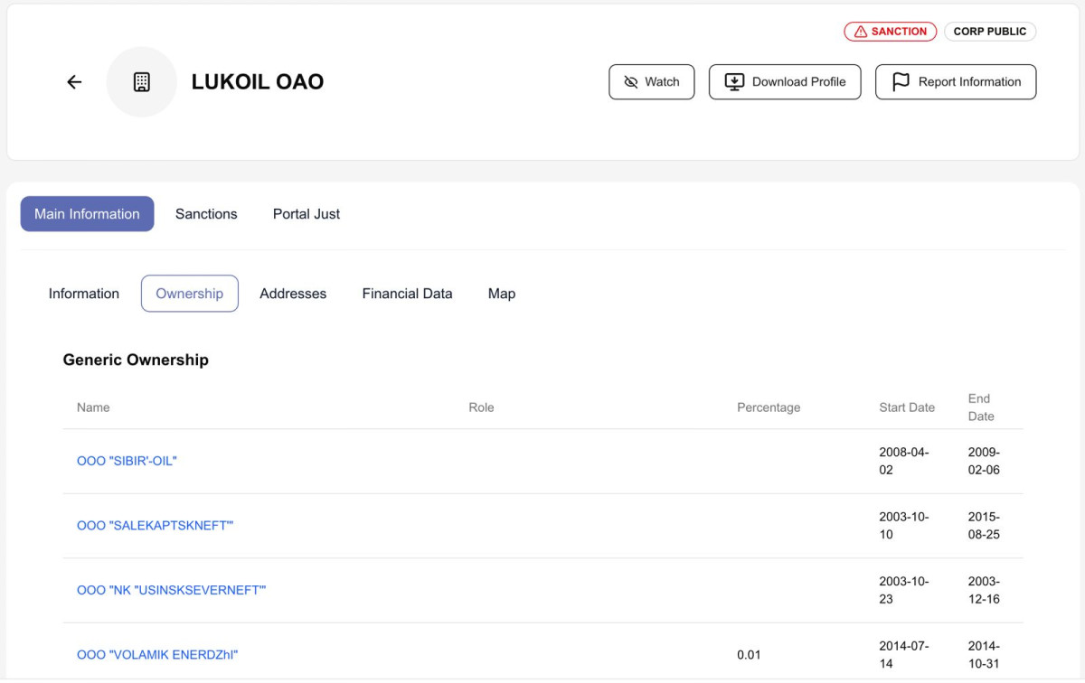 Clear Data oferă acces la informații despre sancțiuni internaționale, persoane expuse public (PEP), companii și asociați, datorii la bugetul de stat, dosare penale și interconectări între entități juridice din România și din regiune, acoperind atât anumite state membre ale Uniunii Europene, cât și state din afara acesteia.