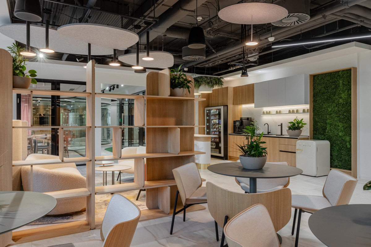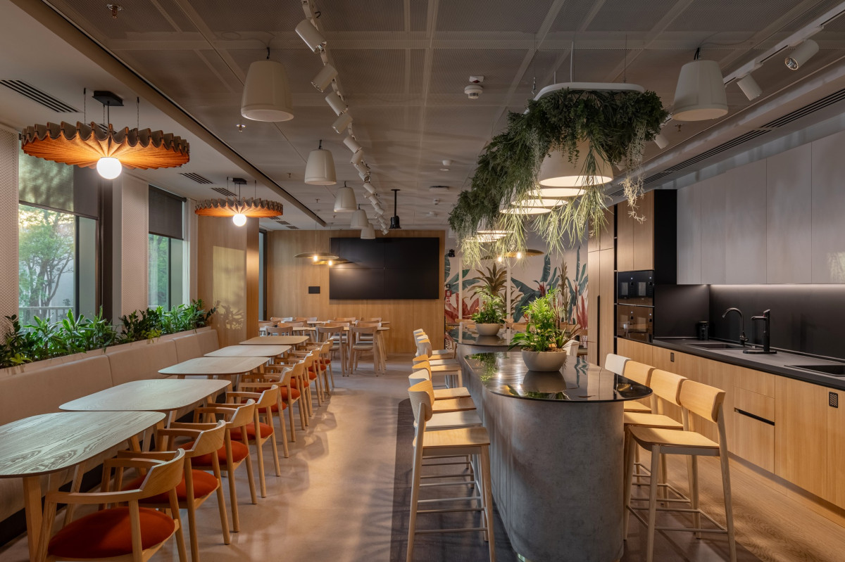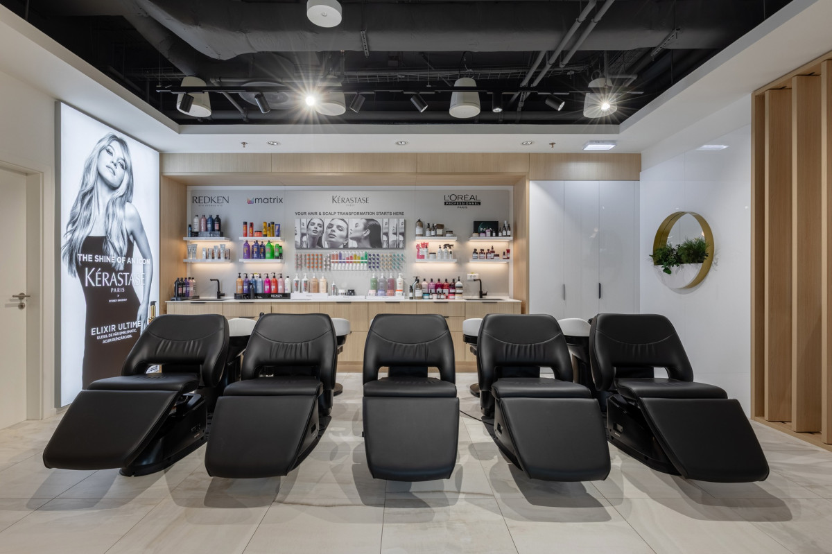 Spațiul include zone dedicate întâlnirilor informale și celebrărilor, precum și zone generoase cu plante care completează estetic și susțin calitatea aerului. Tot aici se regăsește și un spațiu pentru educație: L’Oréal Academy, unde divizia de produse profesionale organizează workshop-uri și training-uri pentru hairstyliștii parteneri. De asemenea, pentru wellbeing-ul echipei, sediul include și o salină.