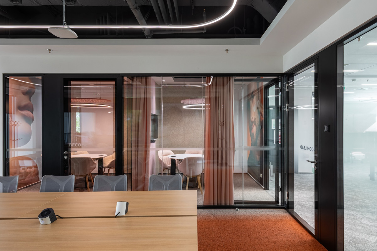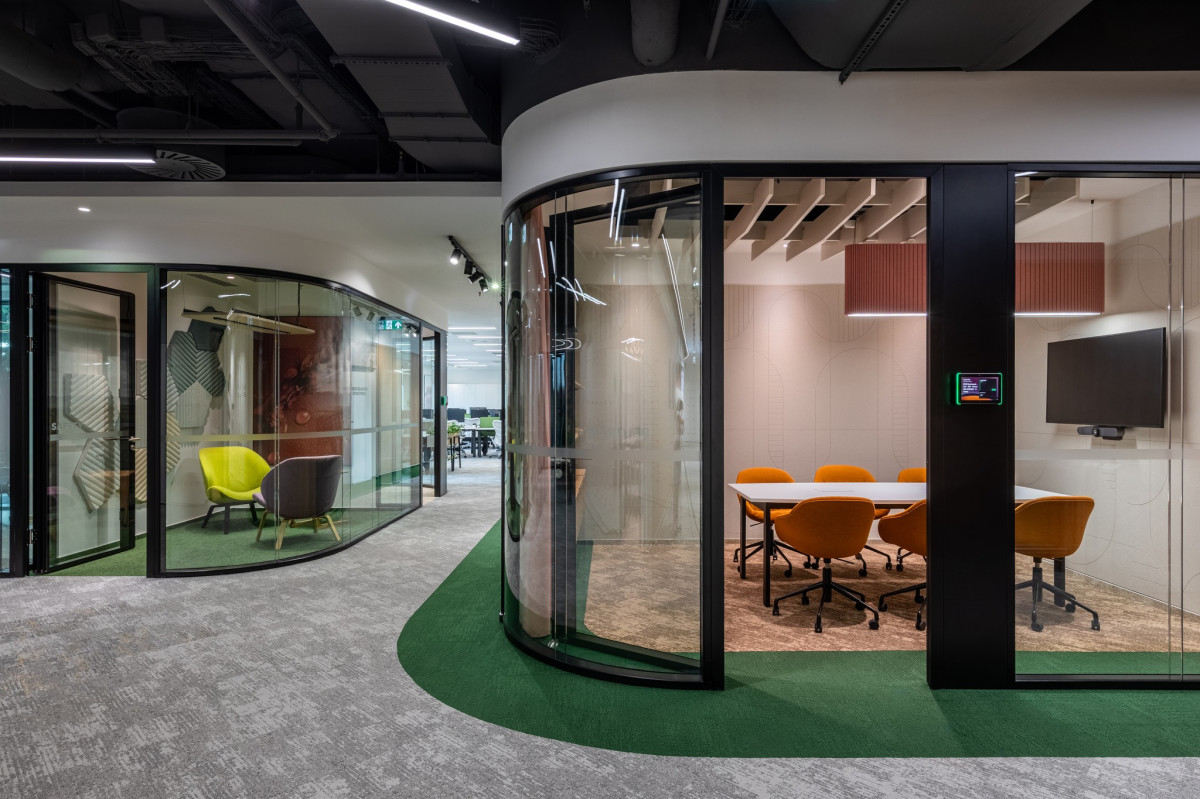 Designul și funcționalitățile au fost gândite pentru eficiență și wellbeing, cu accent pe calitatea mediului interior și flexibilitatea utilizării. Sediul include 44 de săli de meeting, dintre care două „silent rooms”, dedicate momentelor de concentrare și lucru individual, fără conversații. În plus, există 13 phone booths Framery, izolate fonic, cu iluminat și ventilație smart, pentru apeluri sau momente de concentrare.