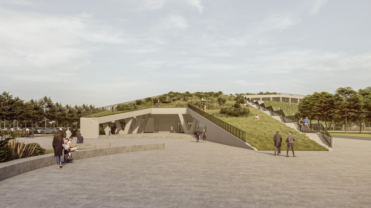 Refuzând ideea unui volum dominant, proiectul propune o soluție arhitecturală care modelează terenul într-un acoperiș verde accesibil publicului, transformând spitalul într-o extensie naturală a peisajului.