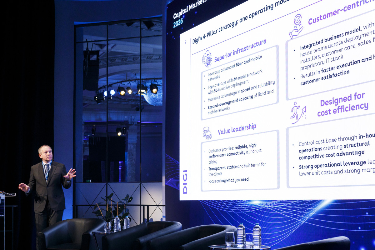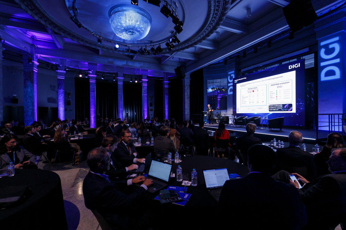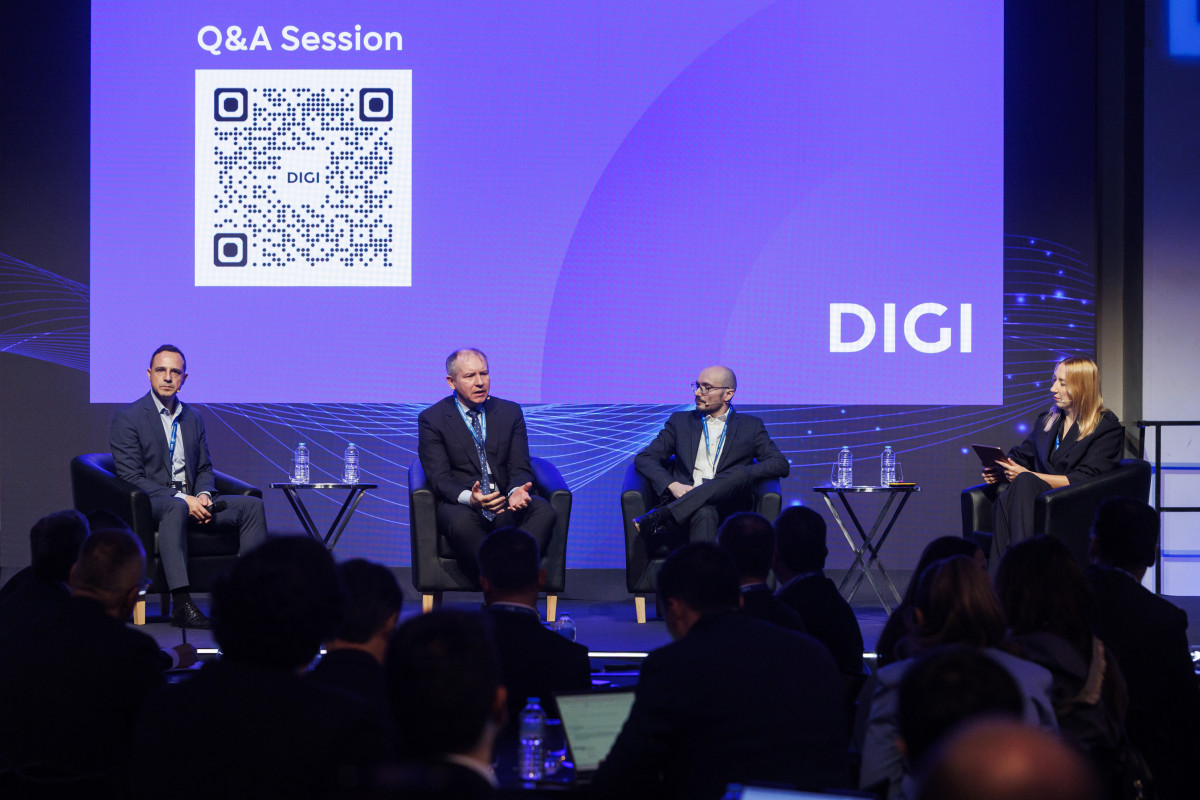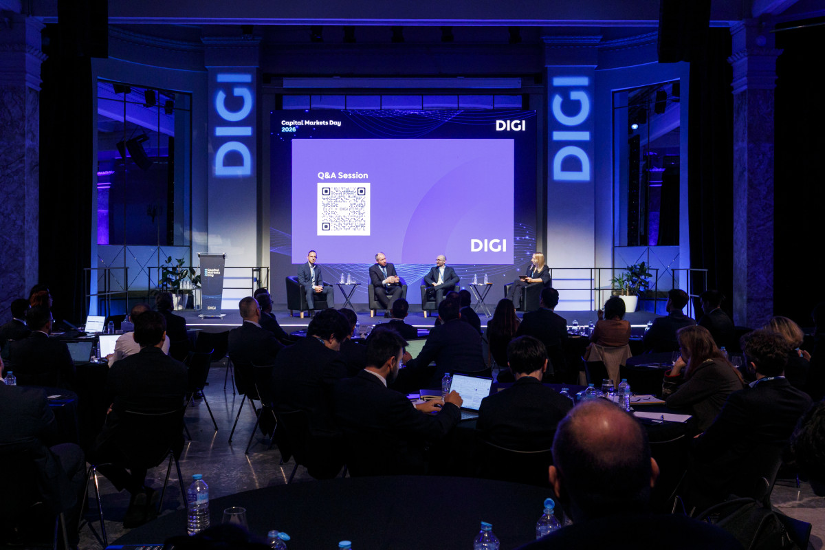Evenimentul a fost structurat în două sesiuni principale. Prima parte, deschisă de Serghei Bulgac (CEO Digi Communications), Valentin Popoviciu (Chief Strategy and Operations Officer Digi Communications) și Dan Ioniță (CFO Digi Communications), a fost dedicată performanței și solidității financiare a Grupului, precum și capacității organizației de a susține o creștere organică pe cele cinci piețe în care activează: România, Spania, Portugalia, Italia și Belgia. Digi Communications a prezentat o retrospectivă a etapelor care au marcat ascensiunea companiei cu rădăcini românești și scalabilitatea modelului DIGI, bazat pe infrastructură avansată de telecomunicații și pe operațiuni eficiente din punct de vedere al costurilor.
