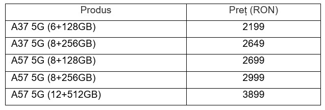 Galaxy A57 5G și Galaxy A37 5G vor fi disponibile începând cu 10 aprilie în România. Prețurile pentru Galaxy A57 5G încep de la 2699 RON, iar pentru Galaxy A37 5G încep de la 2199 RON.